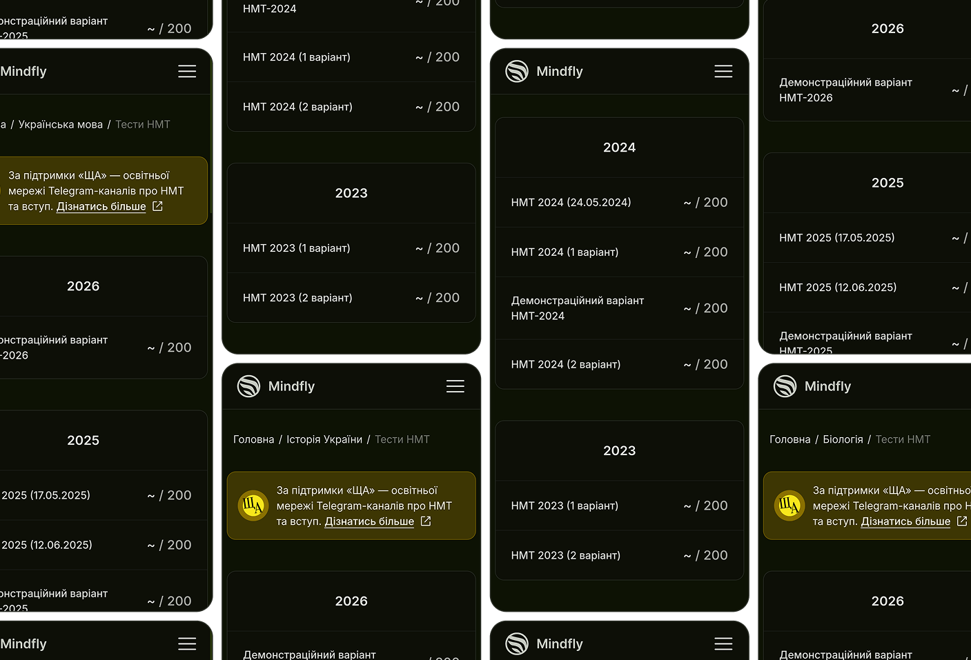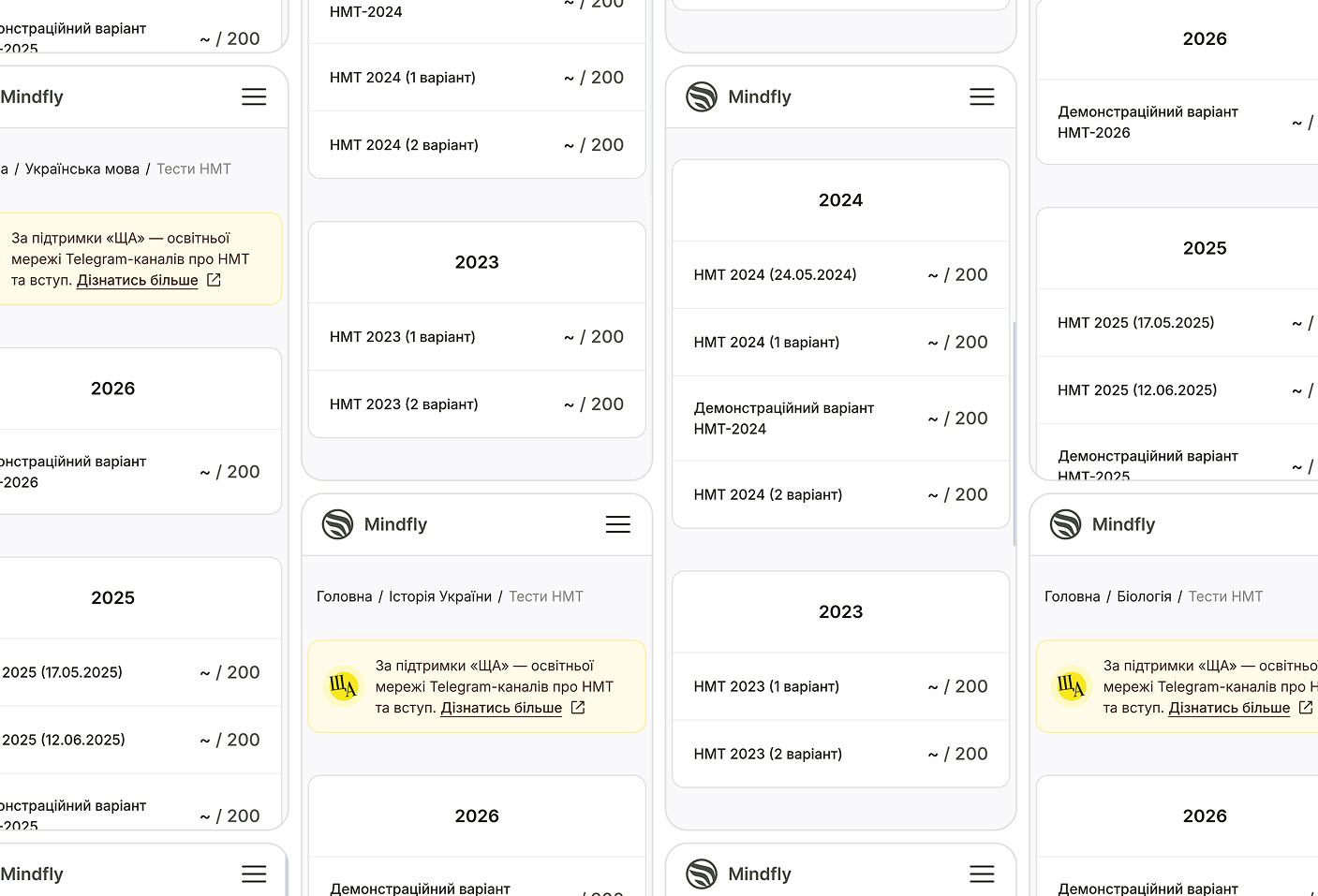 Усе в одному місці: архіви минулих років, точні реконструкції реальних тестів та повні симуляції іспиту.