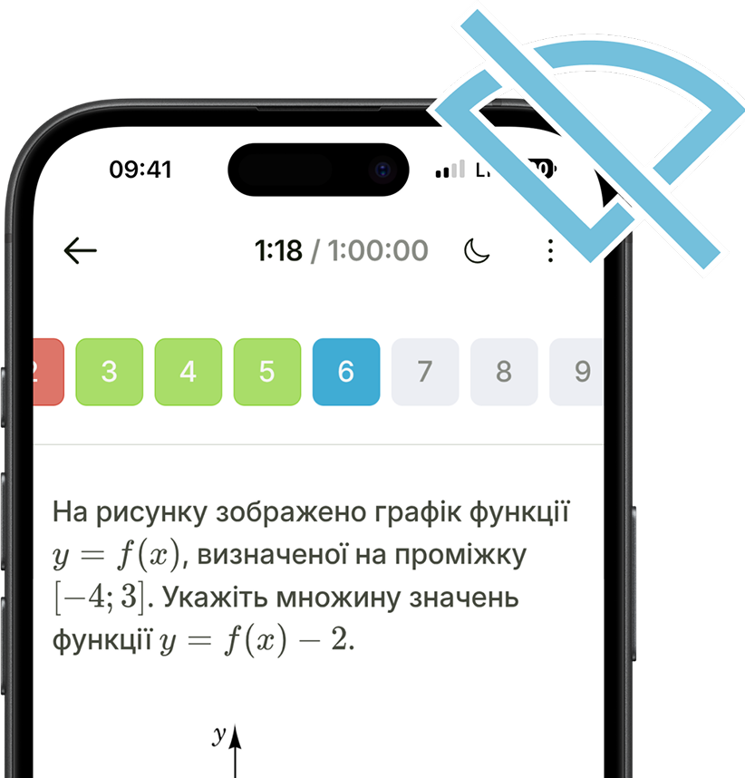 Вчися попри все. Завантажуй матеріали заздалегідь та готуйся офлайн — в укритті чи під час блекаутів. Твій прогрес збережеться.